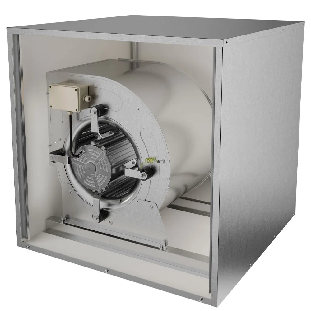 - Centrifugale ventilatiekasten met dubbele inlaat en ingebouwde motor (bedrijfstemperatuur/weerstand: -20° tot 40°).