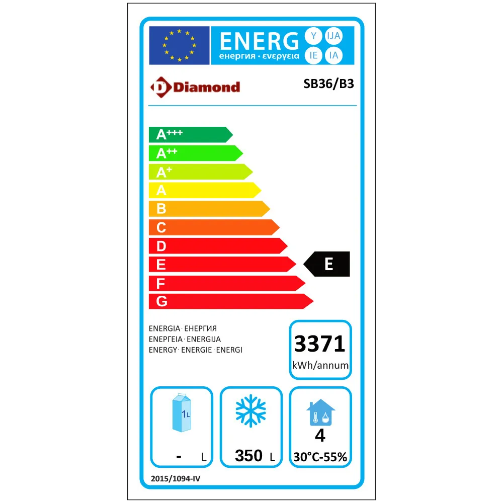 - “Serpentijn” verdamper ingebed in de wanden (3 zijden), isolatie van geëxpandeerd polyurethaan (45 mm), zonder CFK.