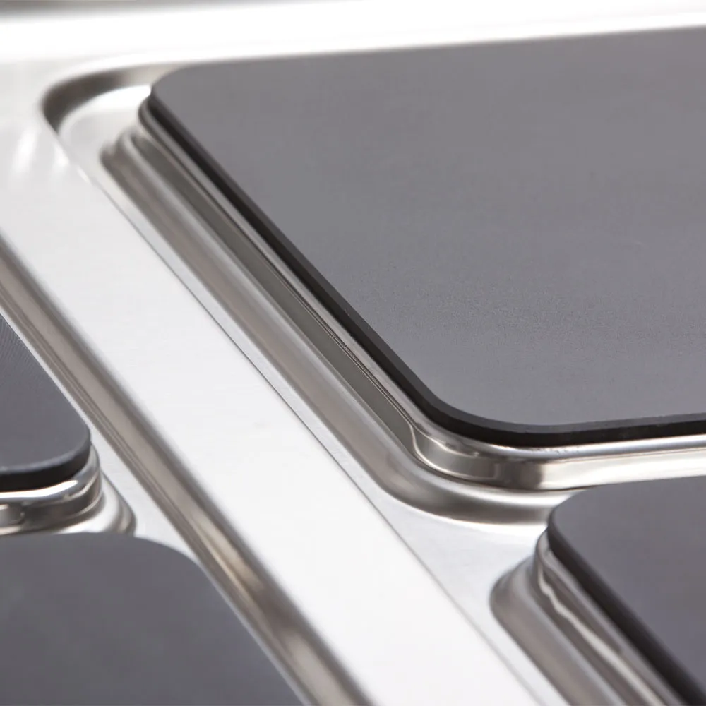 - Gemaakt van AISI 304 roestvrij staal, diepgetrokken bovenblad (15/10 mm), verstelbare poten.
