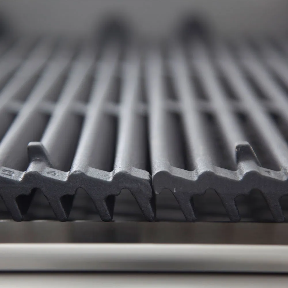 - Verwijderbaar gietijzeren grillrooster (voedsel gecertificeerd in overeenstemming met Europese verordening CE n.1935/2004), 2 zijden, één voor vlees, de andere voor vis, groenten, etc.