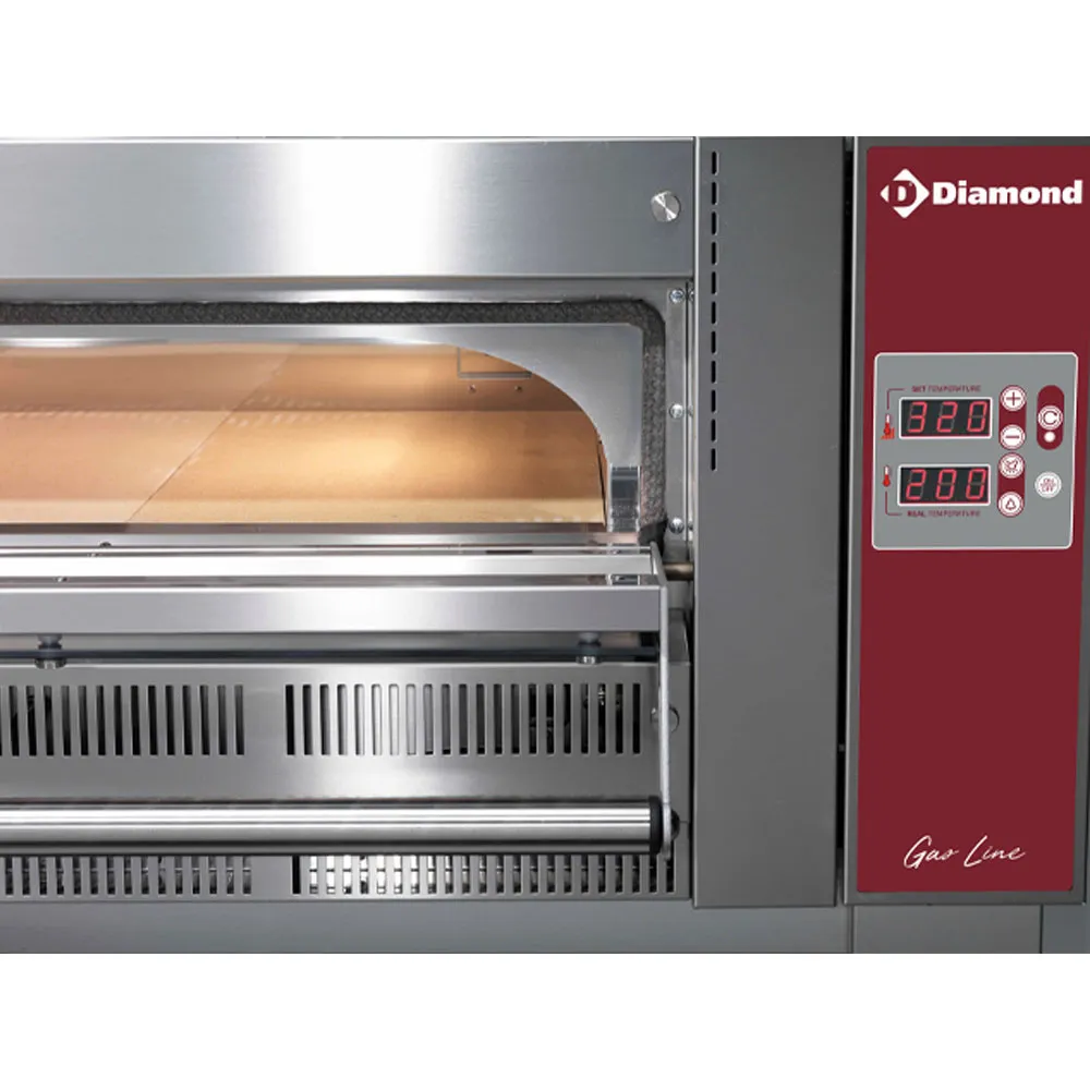 - Kamer: 720x720xh185 mm (15 kW), 4 pizza’s van 350 mm diameter of 1 pizza van 500 mm diameter.