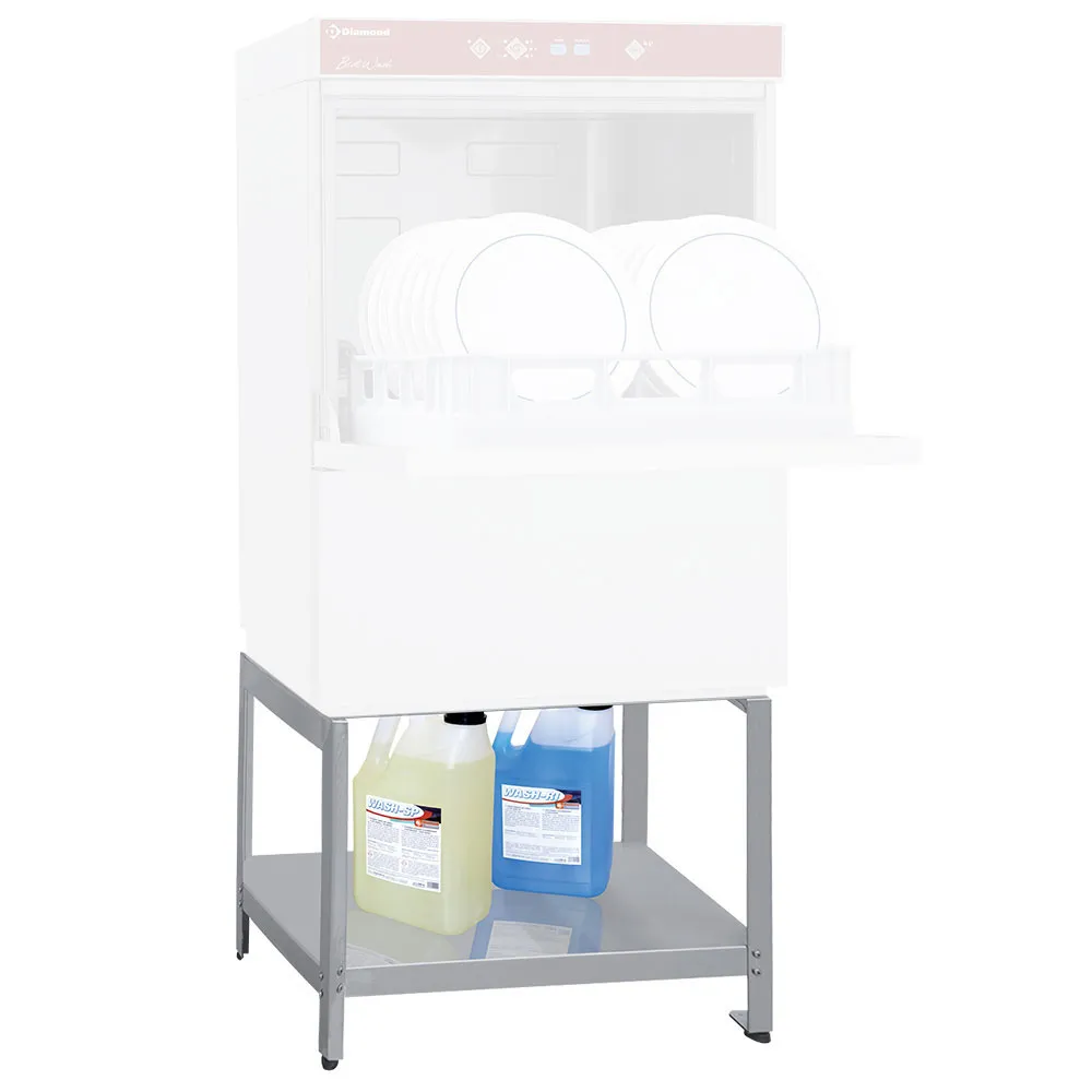 Spoeltafel 2 kuipen 500x500xh325, rechts druipvlak op kast met 2 schuifdeuren