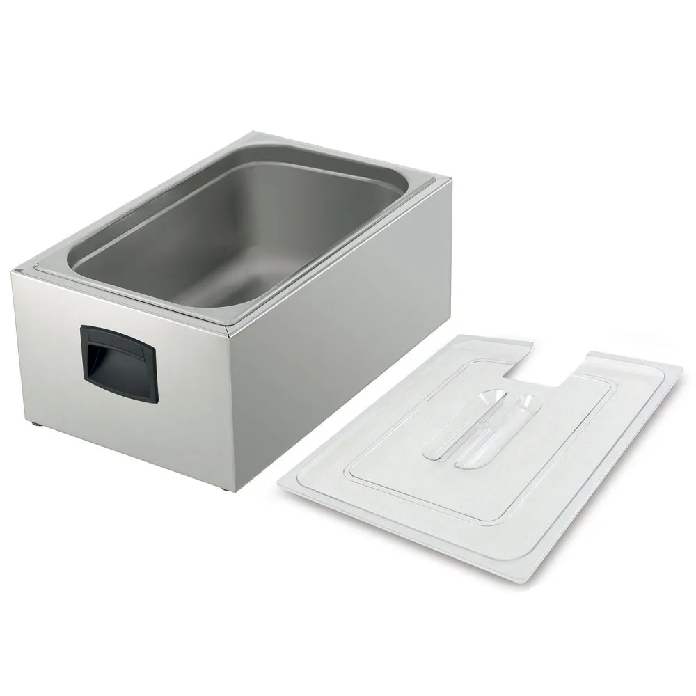 Spoeltafel 2 kuipen 400x500xh275, links druipvlak op kast met 2 schuifdeuren