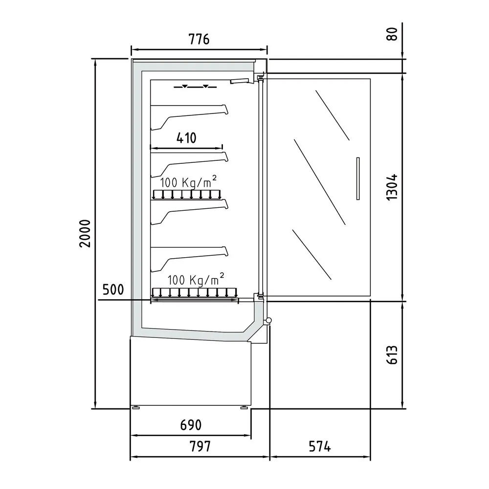 mm (B x D x H) : 1935 x 797 x 2000 – T° : -1° +5° – kW (elec) : 1.58