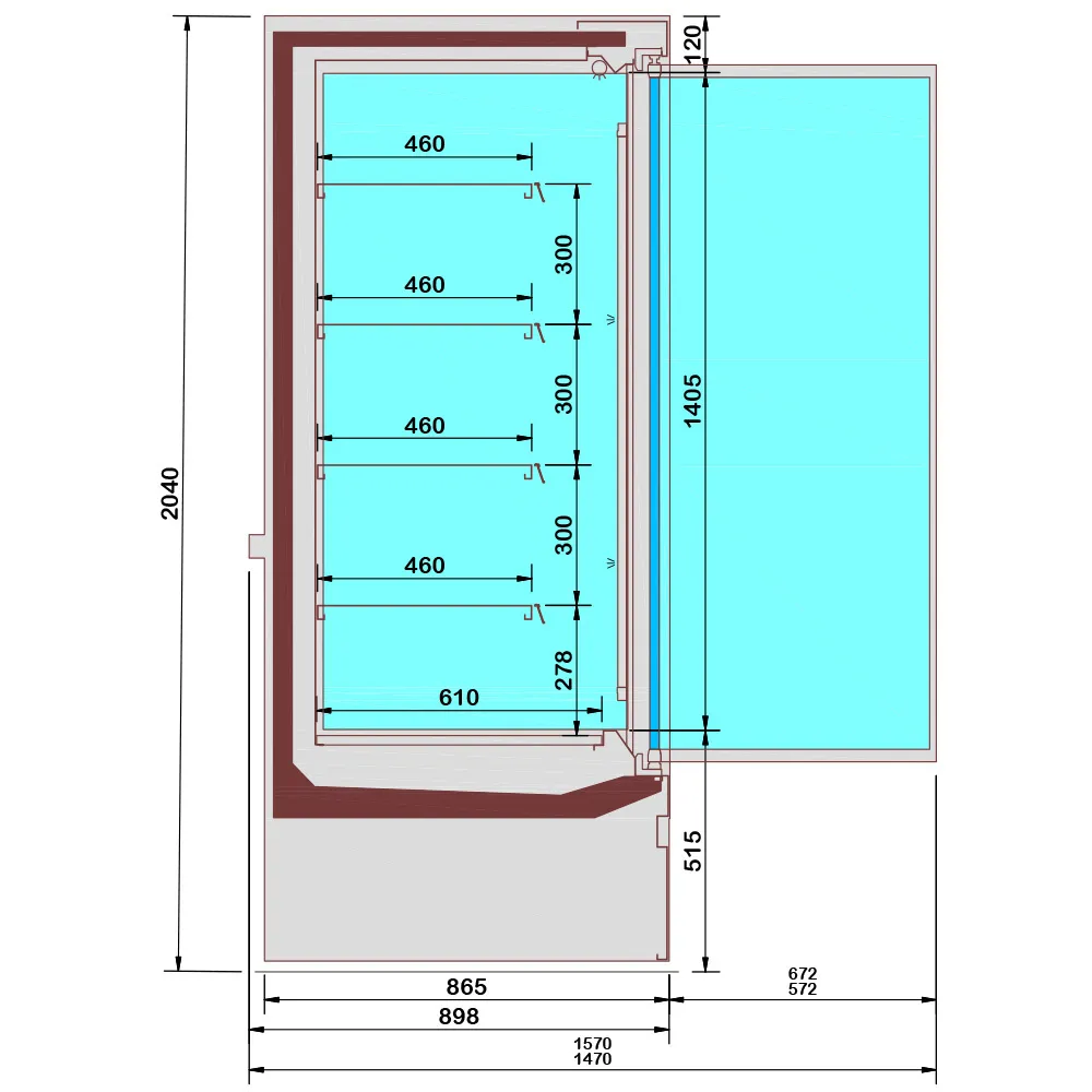 mm (B x D x H) : 2600 x 898 x 2040 – T° : -1° +7° – kW (elec) : 1.33