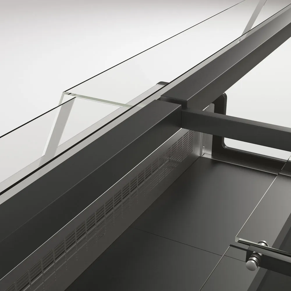 Bovenste schap gebogen bovenbouw “centraal eiland”, in gehard glas.
