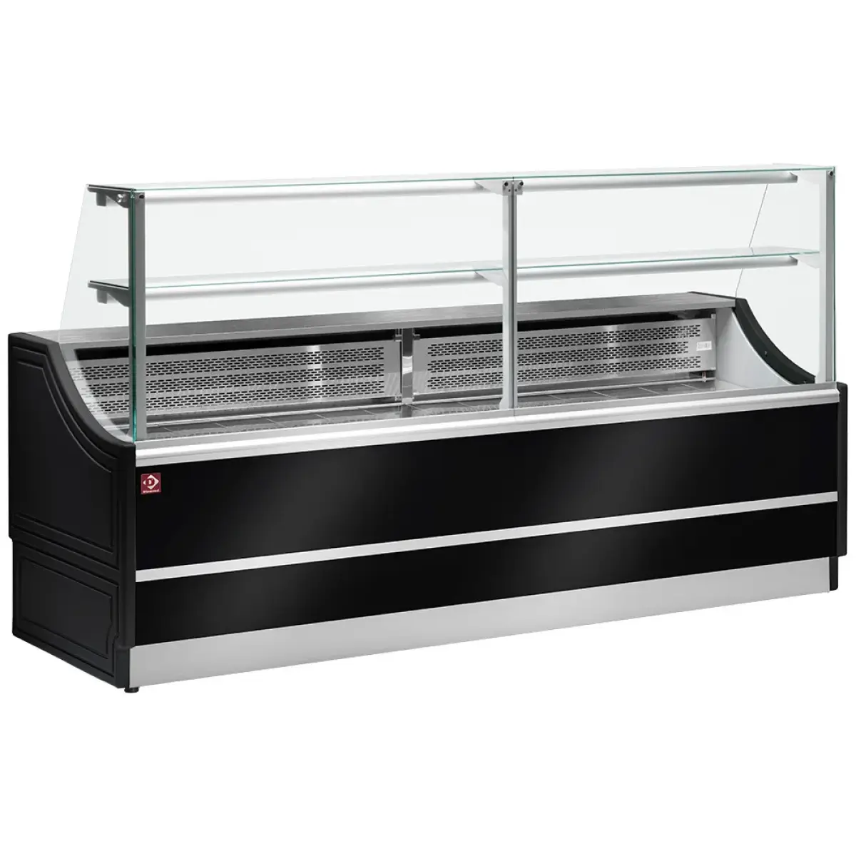 Gekoelde uitstaltoonbank rechte ruiten 90°, met reserve