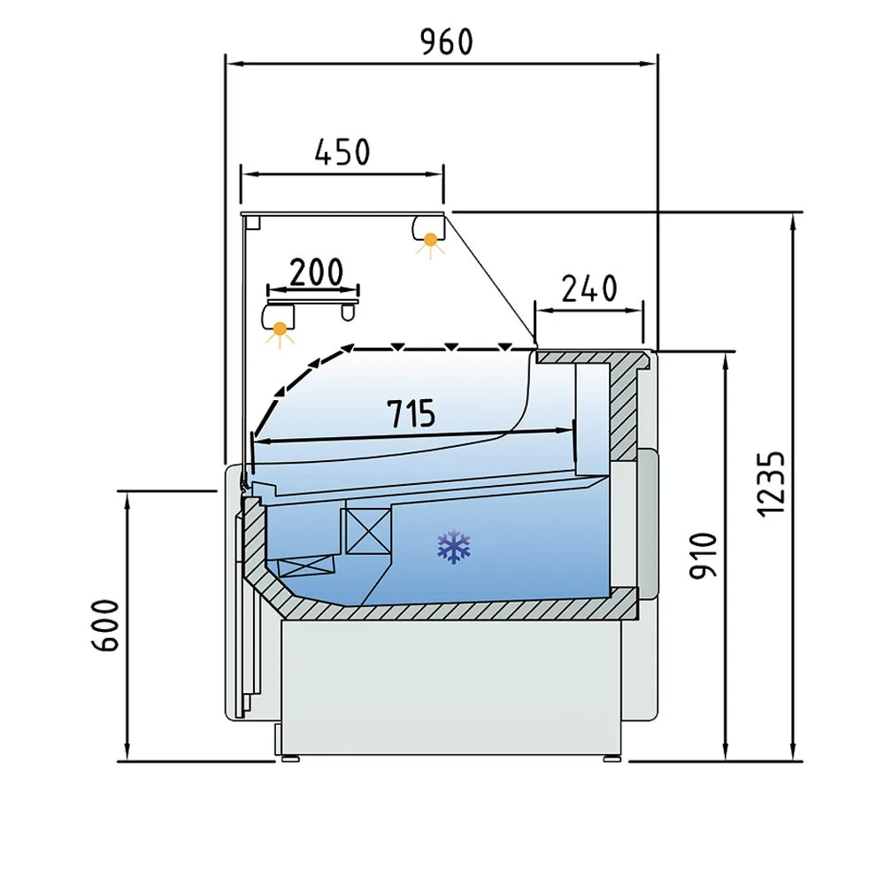 mm (B x D x H) : 1055 x 960 x 1235 – T° : 0° +5° – kW (elec) : 0.92