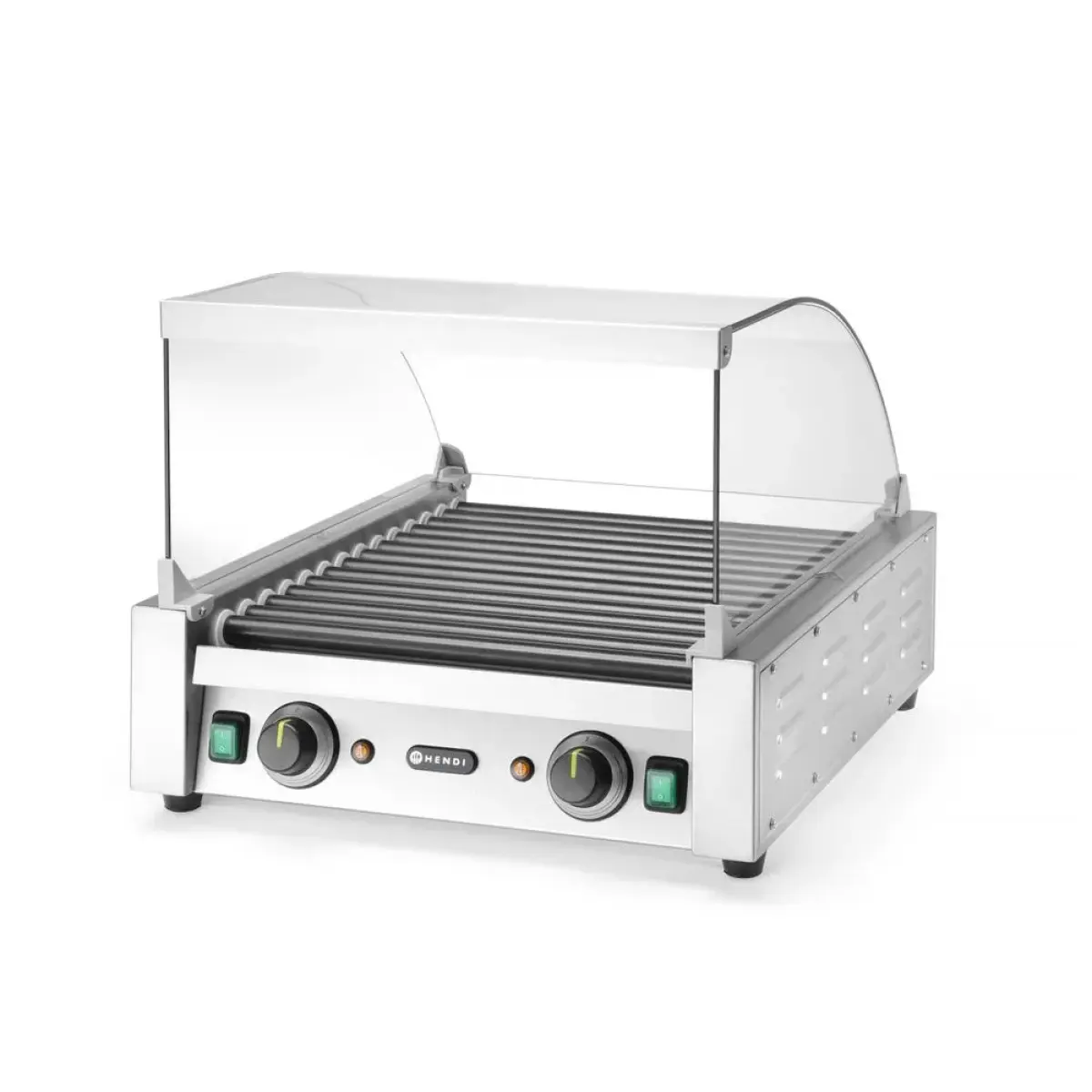 De warmte accumulatie onder de glazen afdekking vermindert de tijd om worsten te grillen met max. 15% .