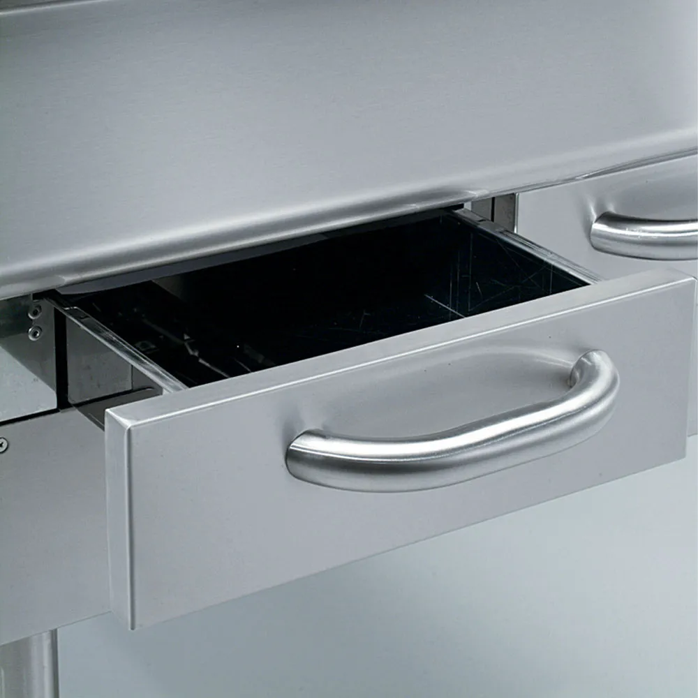 - Gemaakt van AISI 304 roestvrij staal, diepgetrokken bovenblad (20/10 mm), nivellerende poten (roestvrijstalen voor- en zijpanelen: op aanvraag), waterdichtheid IPX5.