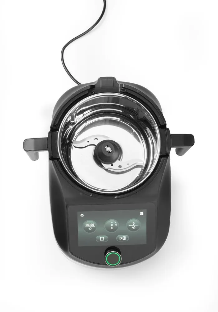 De HENDICHEF Pro multifunctionele voedselverwerker is ontworpen voor professionele keukens en vereenvoudigt de voorbereiding met geavanceerde functionaliteit en robuuste prestaties. Met een ingebouwde kom met hoge capaciteit, naadloos geïntegreerd in de structuur van het apparaat, biedt hij stabiliteit, ruimte-efficiëntie en gebruiksgemak. Door blenderen, mengen en koken te combineren in één krachtig apparaat, beschikt hij over 10 instelbare snelheidsstanden, nauwkeurige temperatuurregeling per 1°C tot 160°C en een responsief 7-inch smart-touchscreen. De HENDIChef PRO is geschikt voor veeleisende culinaire omgevingen en verhoogt de productiviteit, consistentie en controle bij het bereiden van zowel warme als koude gerechten.