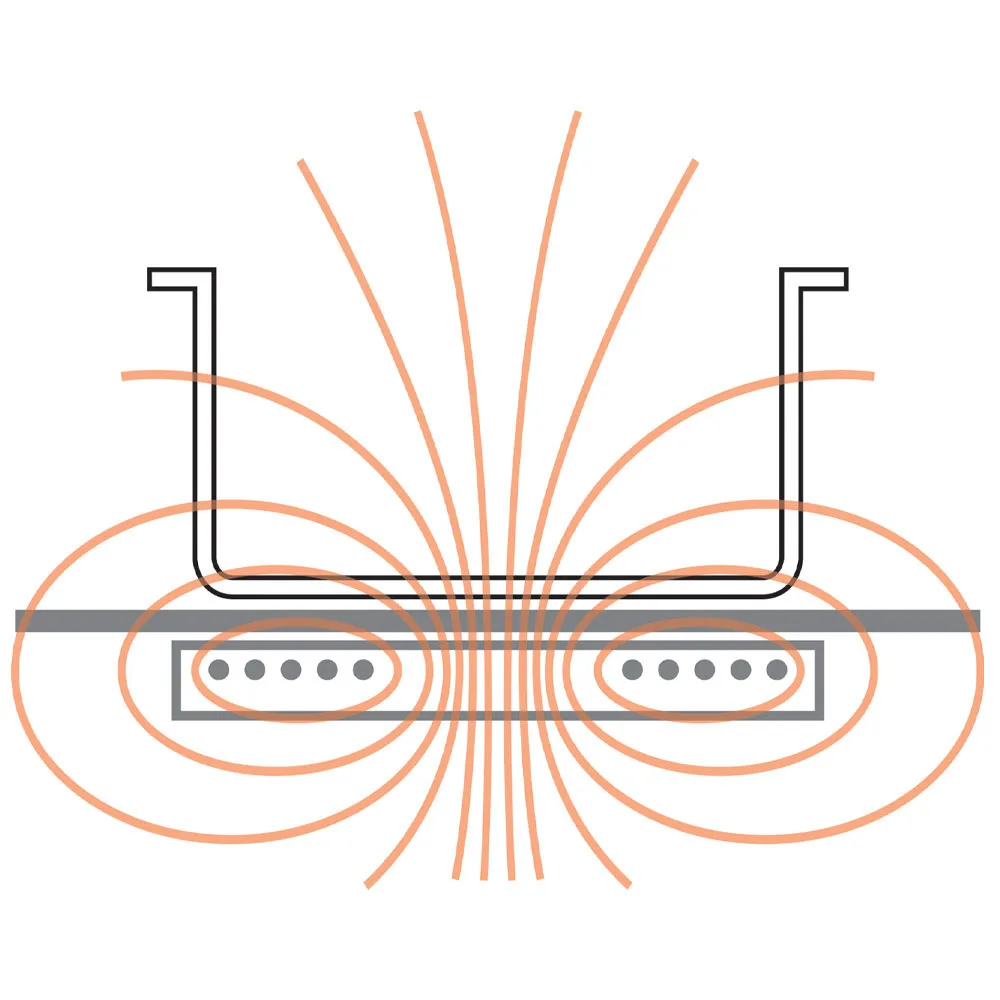 De warmte wordt geproduceerd door een magnetisch veld direct in het recipiënt, dit veld wordt elektronisch gecreëerd, er is geen verwarmingselement, wat het een grote veiligheid geeft. Koken gebeurt bijna zonder warmteverlies; het is de meest economische technologie, het verwijderen van het recipiënt is voldoende om te stoppen met koken.