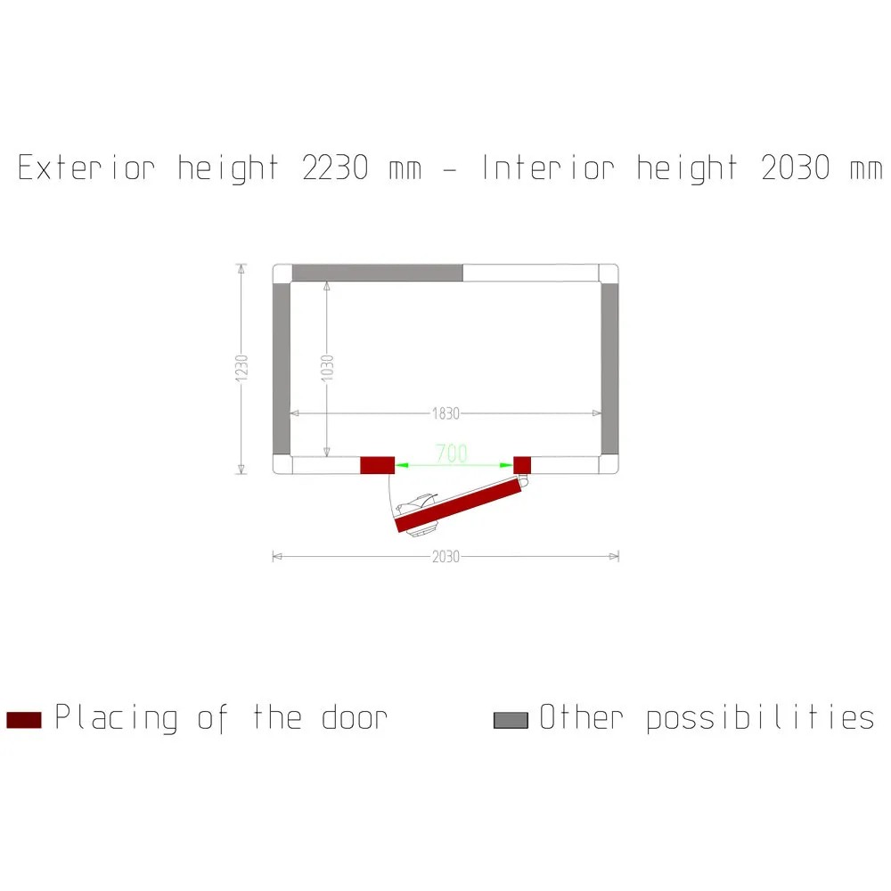 - Inwendige afmetingen 1830x1030xh2030 mm.