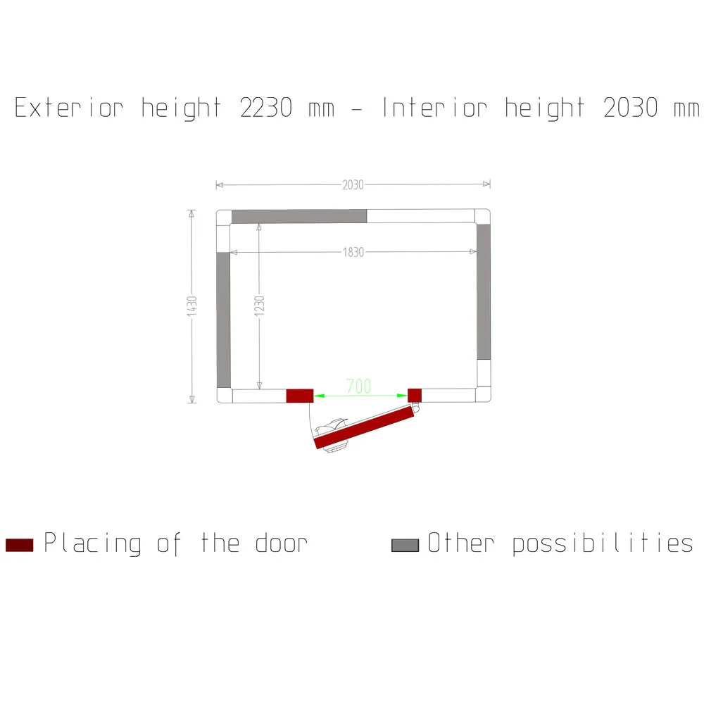- Inwendige afmetingen 1830x1230xh2030 mm.