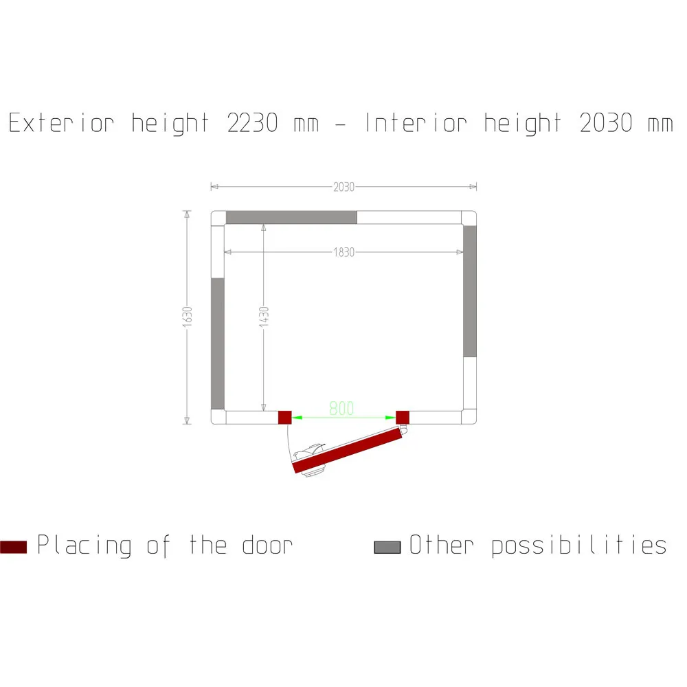 - Inwendige afmetingen 1830x1430xh2030 mm.