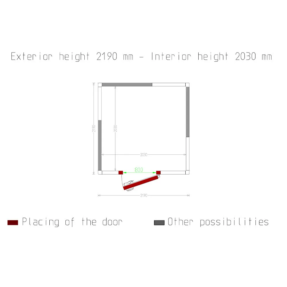 - Deur met bruikbare doorgang 800x1900mm (deurpositionering naar keuze, aan alle 4 zijden).