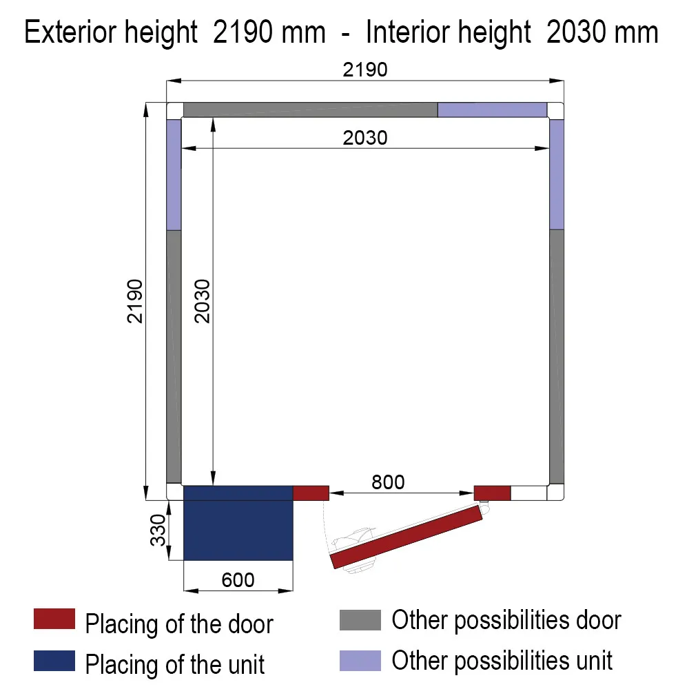 - Vrije deuropening 800 xh 1900 mm (plaatsing van de deur naar keuze, op alle 4 zijden).