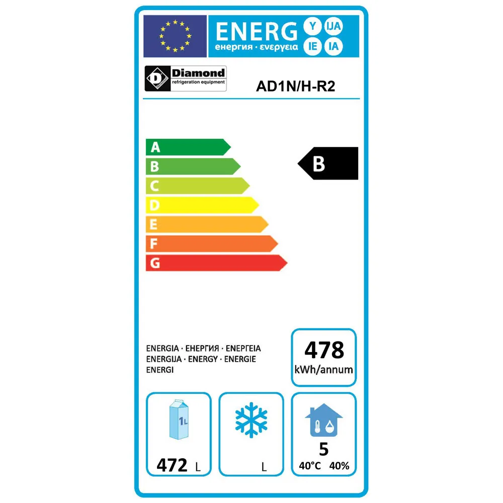 - “Diamond Green Technology” tot 70%* besparing. – “Buffer” koeleenheid, getropicaliseerd (43 °C). – CFK-vrije polyurethaan isolatie, 85 mm dik, “super geïsoleerd”. – Uitzonderlijke prestaties dankzij de homogene verdeling van de “laterale stroming” van de gekoelde lucht, waardoor een gelijkmatige temperatuur mogelijk is en een goede bewaring van de producten wordt gegarandeerd (geen “droging van het voedsel” in de koelkasten). – Voor delicate producten (bv. patisserie, gebak, enz.) kunnen 2 vochtigheidsniveaus worden geactiveerd (in de microprocessor). – Microprocessorbesturing (in een gesloten kast, 100% waterdicht).