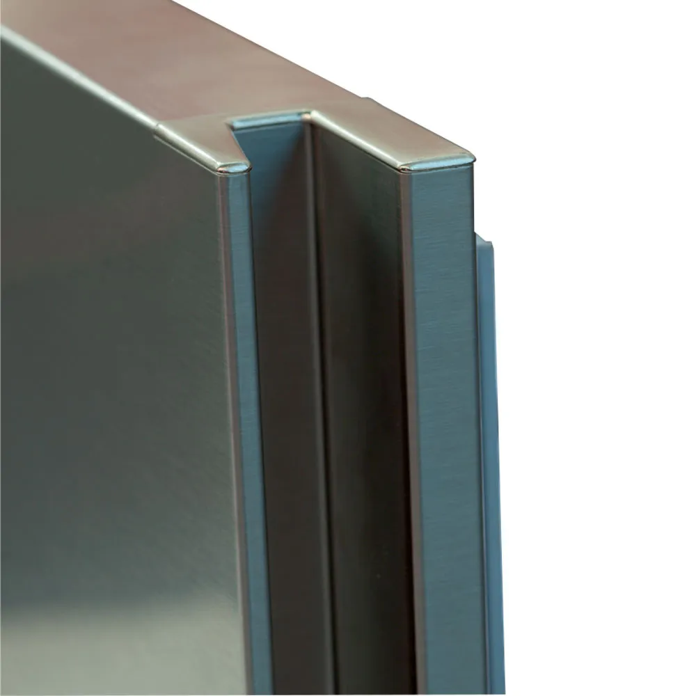 - Binnen – en buitenkant vervaardigd uit austenitisch (voeding) roestvrij staal, achterkant in gegalvaniseerd staal.