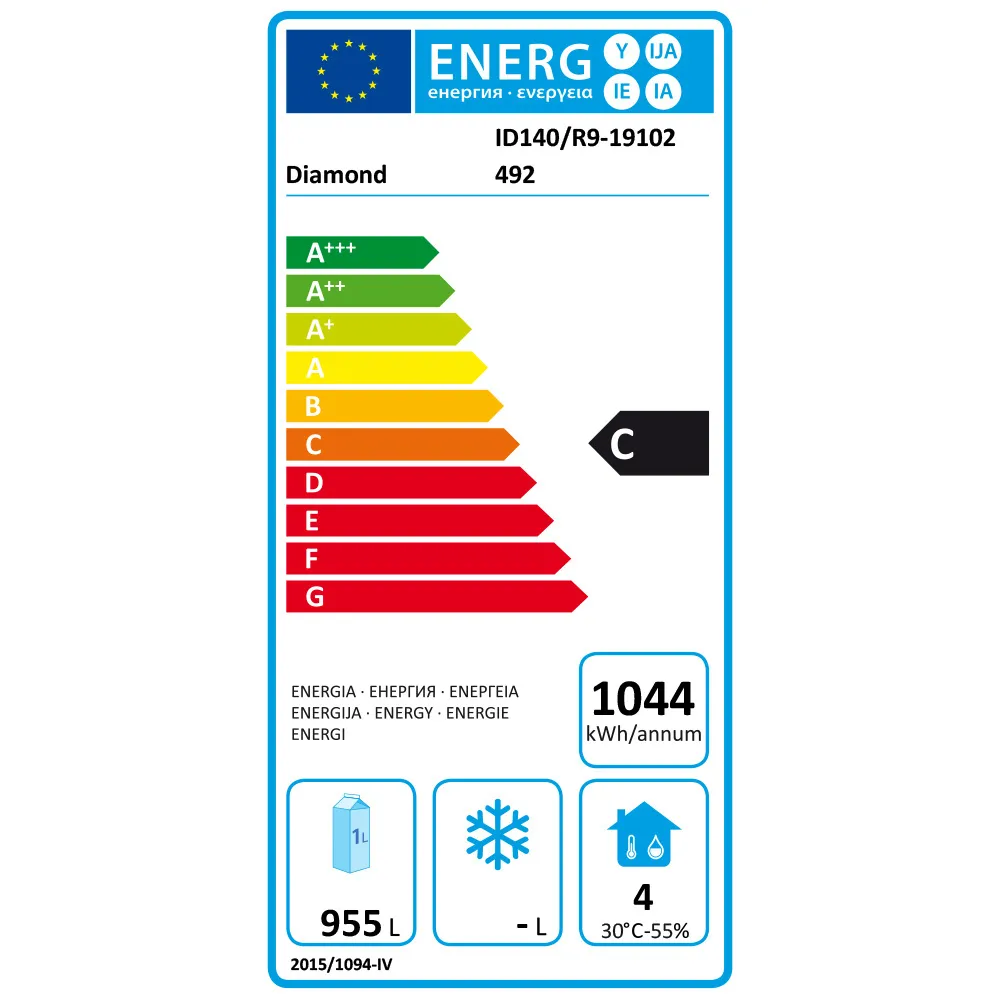 - Energielabel: C (klimaatklasse 4 “omgevingstemperatuur +30°C – relatieve vochtigheid 55%”).