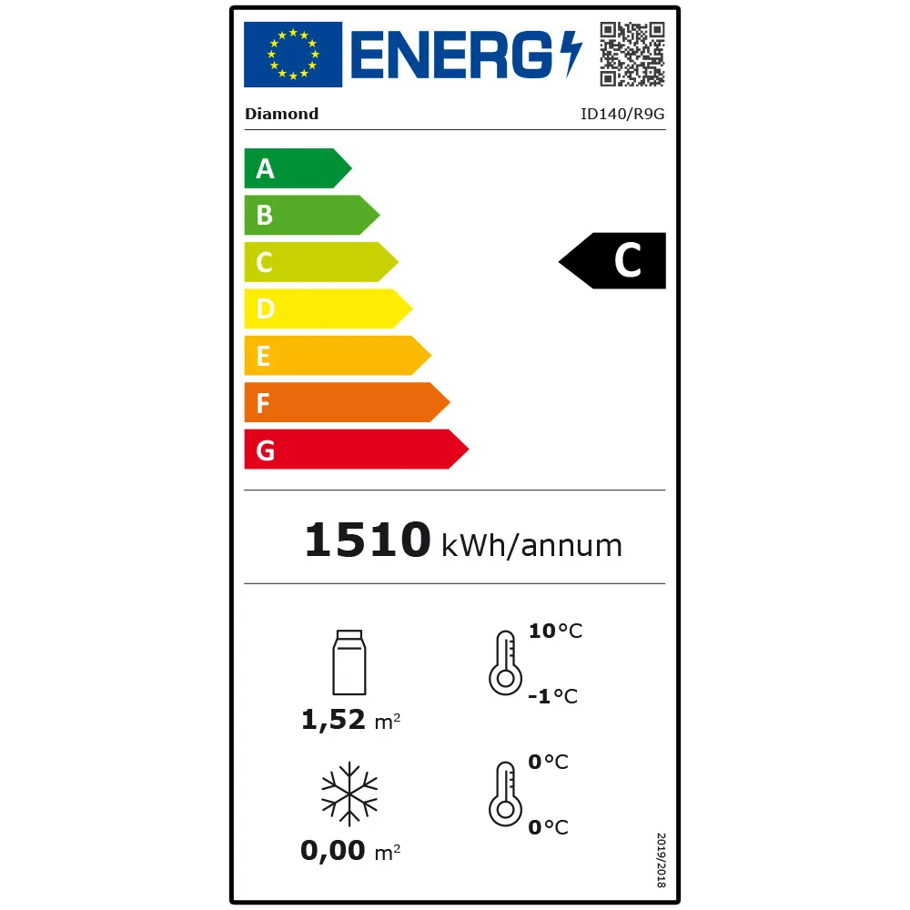 - Energieklasse: C (klimaatklasse 4 “omgevingstemperatuur +30°C – relatieve vochtigheid 55%”).