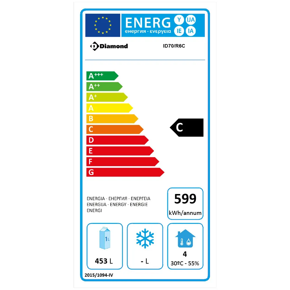 - Energielabel: C (klimaatklasse 4 “omgevingstemperatuur +30°C – relatieve vochtigheid 55%”).