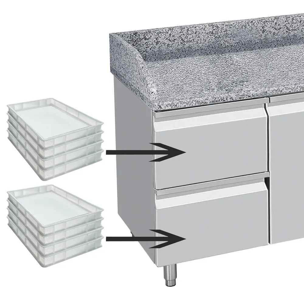 Koeltafel 2 deuren 600×400, 2 neutrale laden (8x bakken 600×400) + gereedschapslade