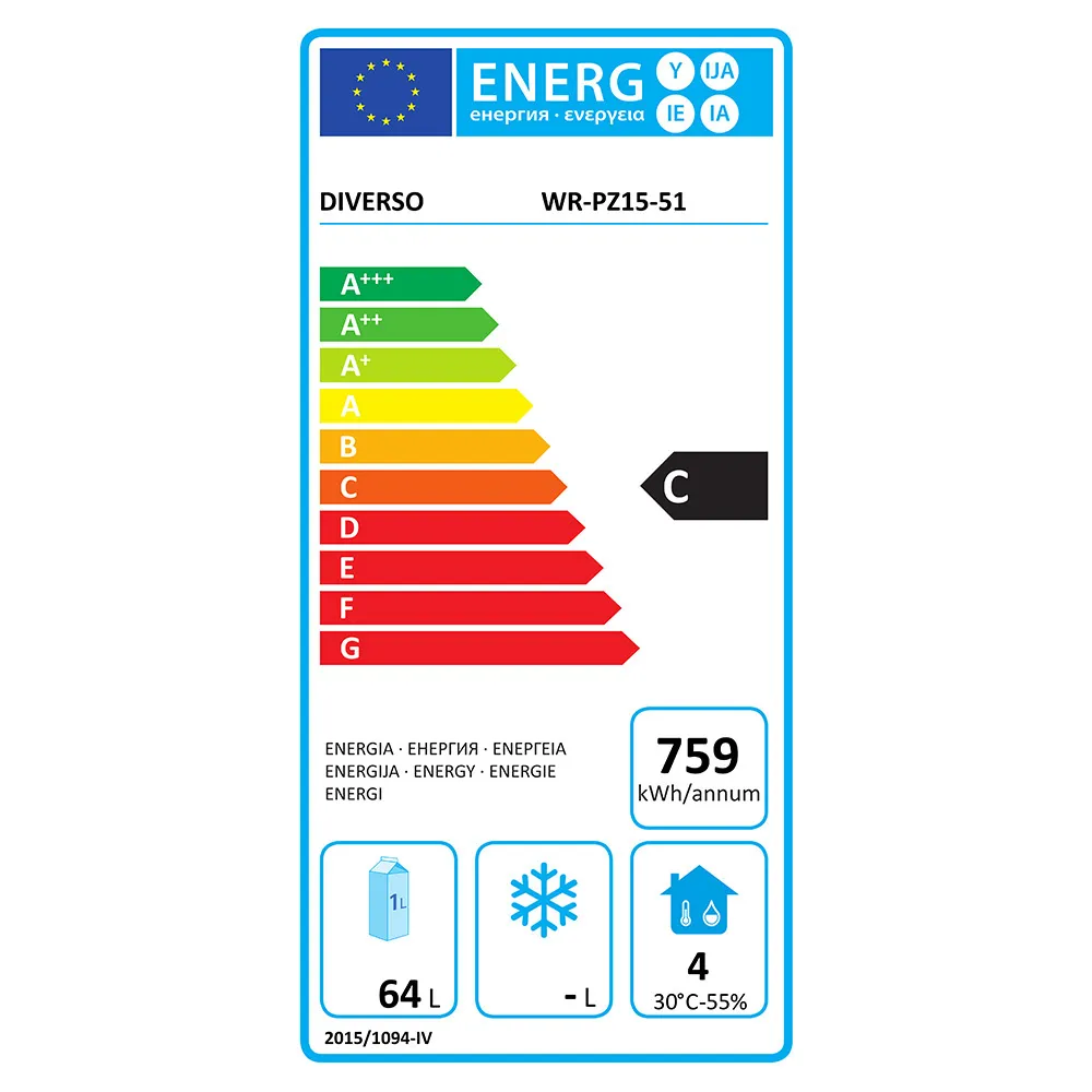 mm (B x D x H) : 1500 x 800 x 1040 – T° : -2°+8° – kW (elec) : 0.3