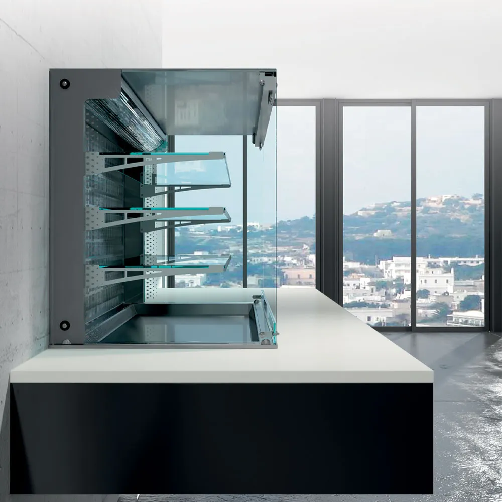 - Vitrine met 3 niveaus, open aan de klantzijde.