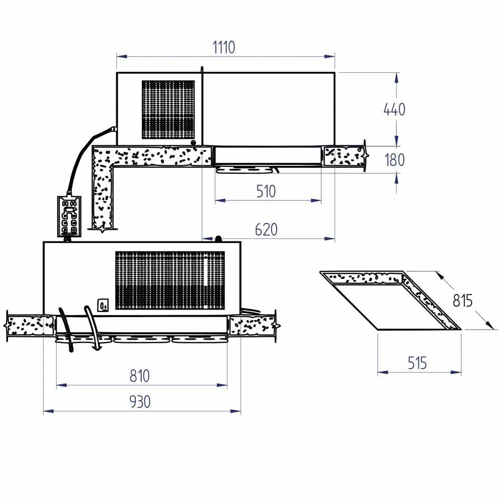 mm (B x D x H) : 1110 x 930 x 440(620) – T° : -5°+5° – kW (elec) : 1.65 – Voltage : 400/3N 50Hz