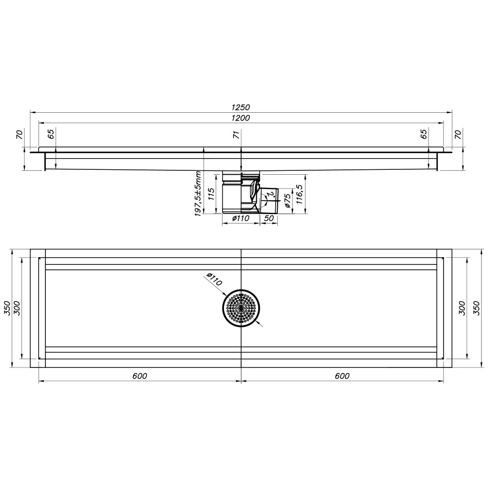 Roestvrij stalen vloerafvoergoot 1200×300, zijdelingse uitgang