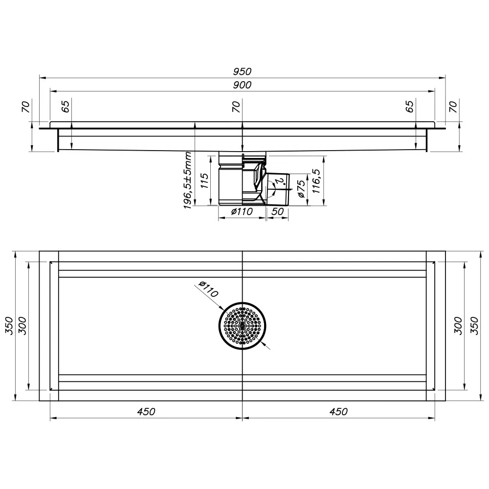 Roestvrij stalen vloerafvoergoot 900×300, zijdelingse uitgang