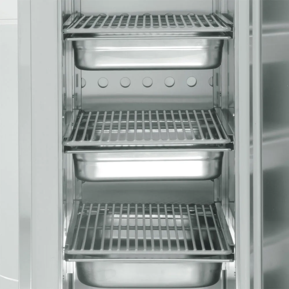 - Standaard toebehoren: 5 paar geleiders “anti kantelbaar” en 3 roosters GN 1/1.