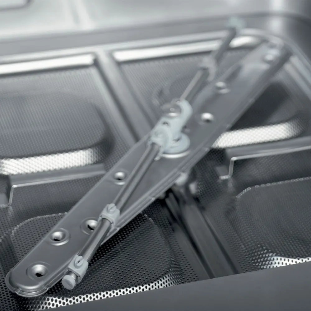 - Roterende was- en spoelarm (boven en onder, onderste in roestvrij staal).