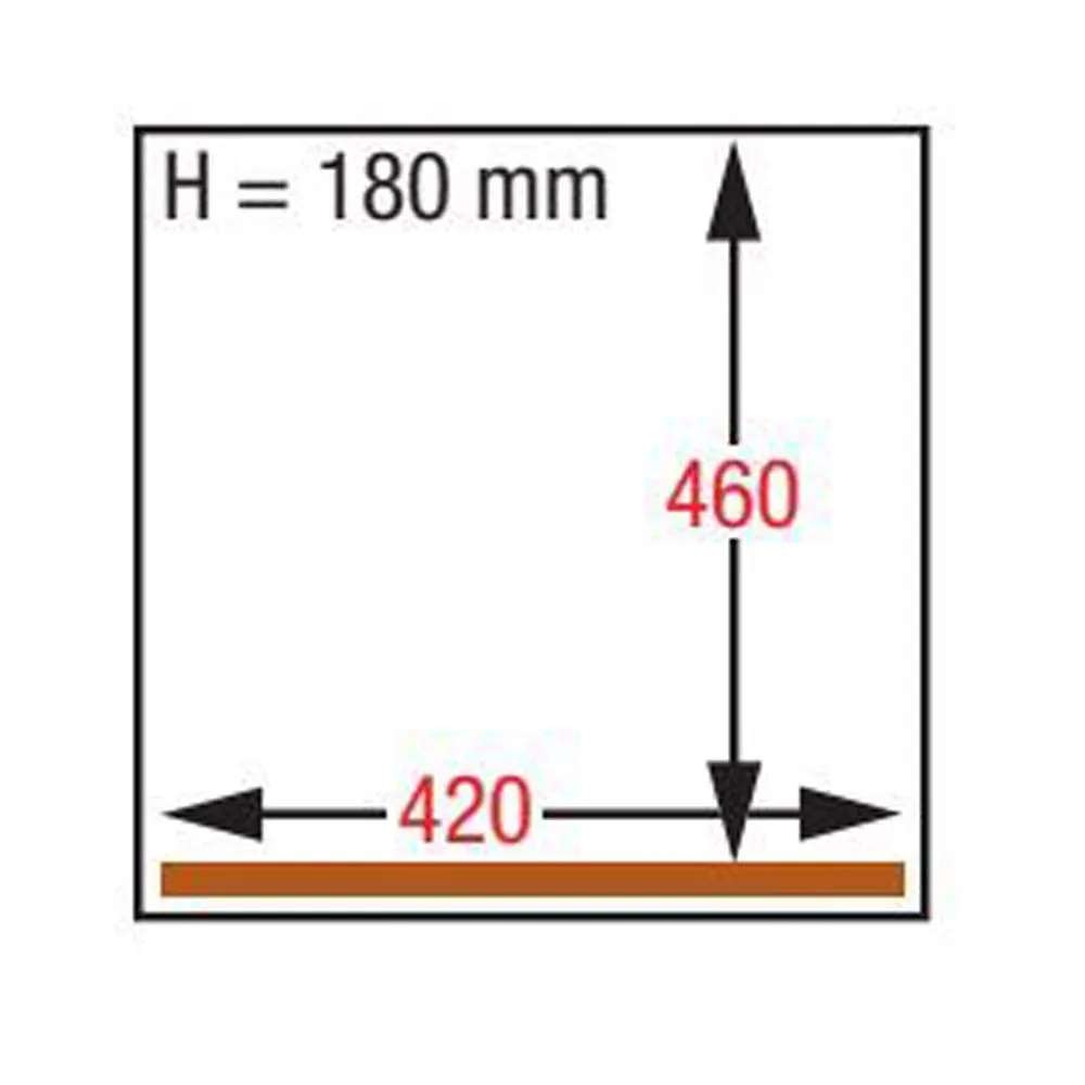 - Kamerafmetingen: 420x460xh180 mm (afdichting lengte: 420mm).