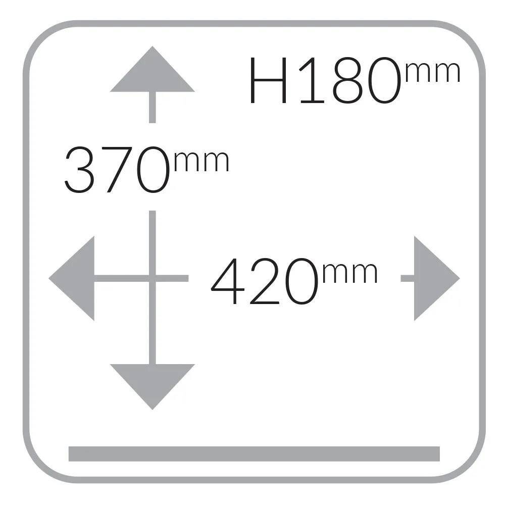 - Afmetingen van de kamer: 420x370xh180 mm (Lasslengte: 410mm).