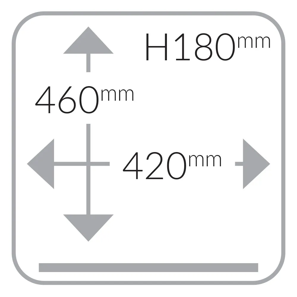 - Afmetingen van de kamer: 460x420xh180 mm (Lasslengte: 410mm).