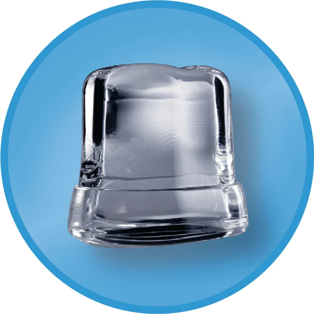 Koperen sproeiers ontworpen om kalkmagnetisatie te voorkomen. Watertoevoer tijdens de cyclus in gesloten circuit. Compacte, kristalheldere ijsblokjes (kubusvorm). Gevormd om aan alle eisen van de sector te voldoen.