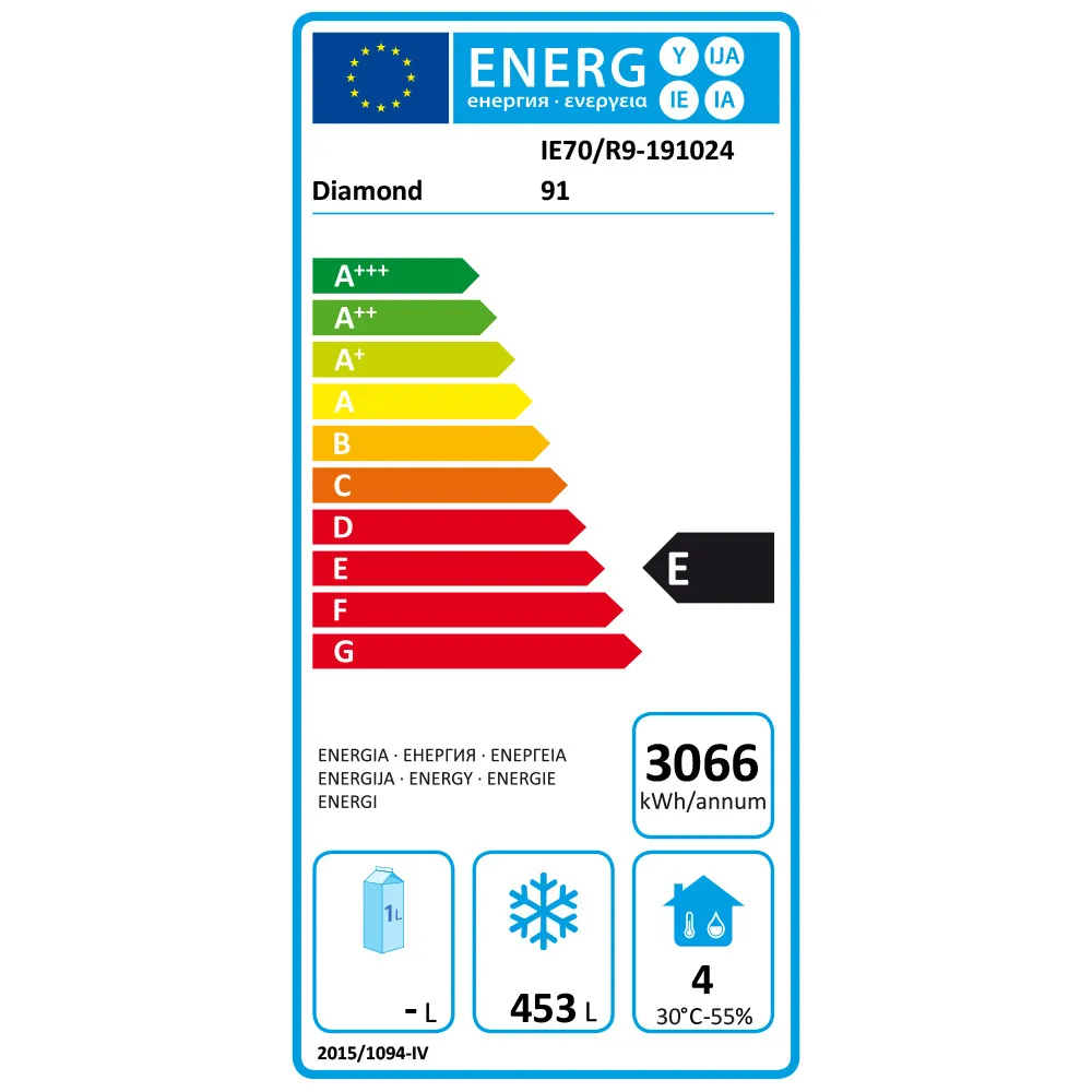 - Energielabel: E (klimaatklasse 4 “omgevingstemperatuur +30°C – relatieve vochtigheid 55%”).