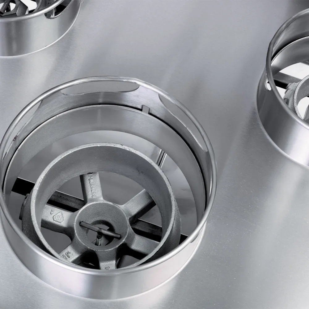 - Branders type wok 4x Ø 290mm 21,44kW und 3x Ø 230mm 10,13kW.