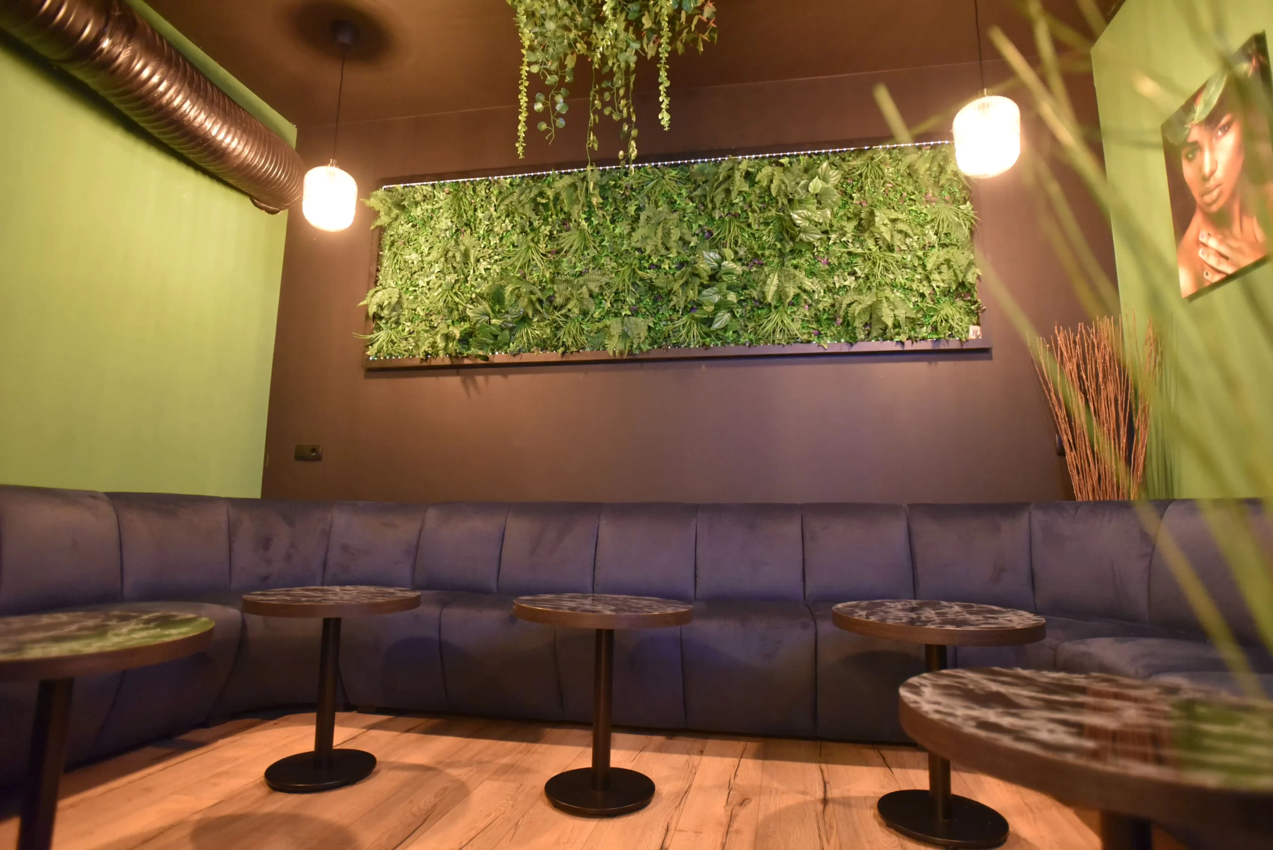 Een moderne inrichting waar mensen gezellig kunnen samenkomen en genieten van de relaxte sfeer.
